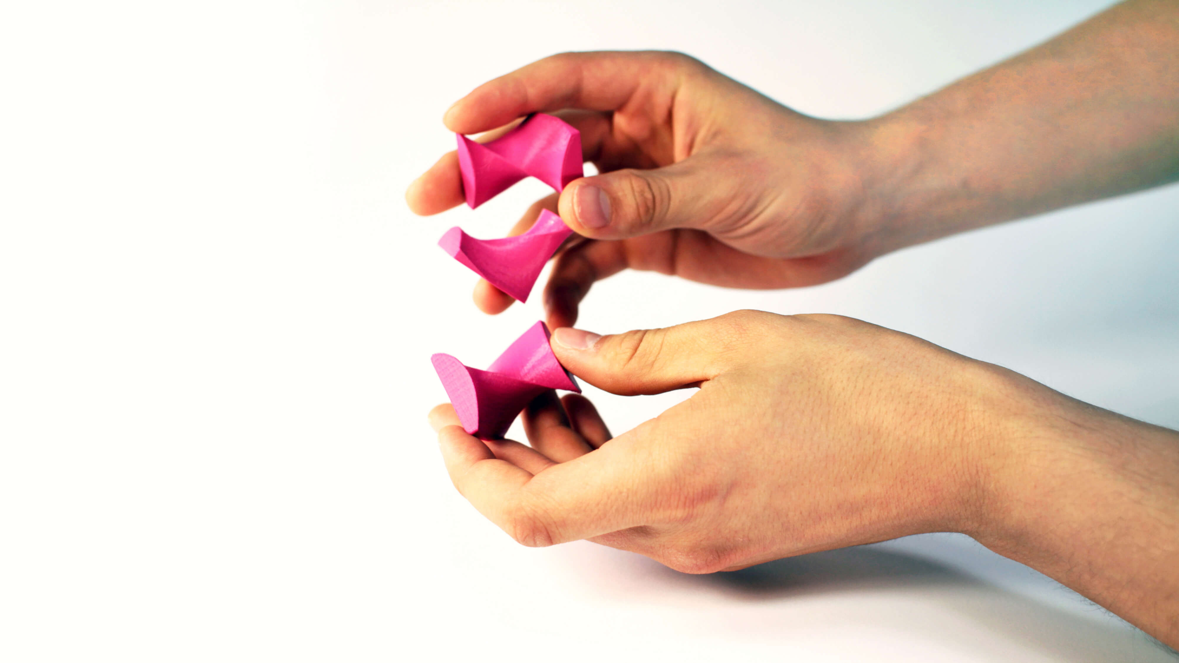 Inspired by DNA, Kinetic Cubes are cut into 3 equal pieces by the curve of a helix.